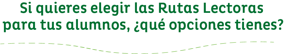 Cualquiera de las 3 Rutas. Cada Ruta contiene 4 títulos impresos para cada grado + documentos que permitirán desarrollar la Ruta paso a paso + mochila con regalo para el alumno y el profesor + acompañamiento con visitas de autor + 2 talleres de formación a profesores.